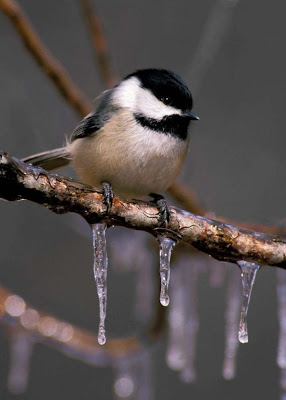 Cold Feet - Chickadee and Icicles - 5x7 Original Fine Art Photograph by NatureIsArt